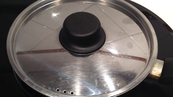 Tapo la sartén para agilizar que el puerro se haga. Después lo destapo para que pierda la humedad que haya podido quedar.