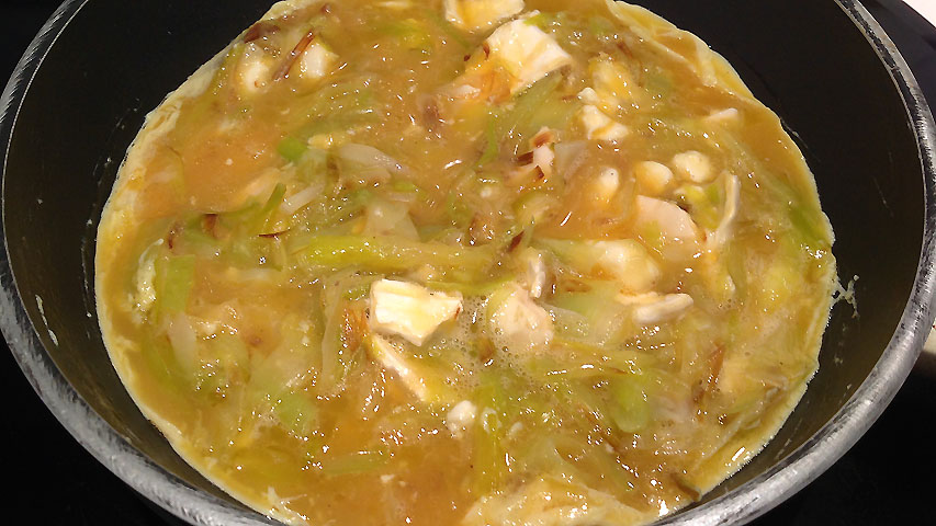 Vierto el contenido del bol en la misma sartén donde sofreí el puerro con apenas unas gotas de aceite.