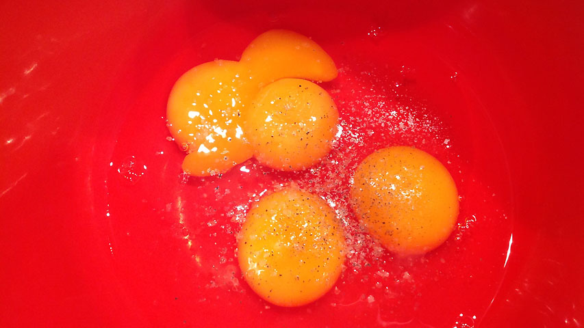 Mientras se hace el puerro preparo los huevos para la tortilla.
