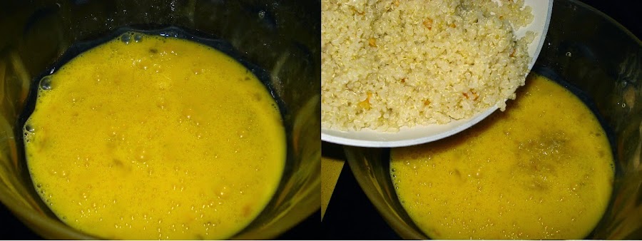 Batimos los huevos con la sal y la levadurina, y añadimos la quinoa.