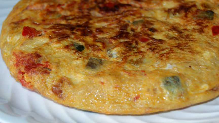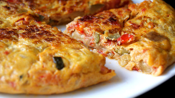 Esta tortilla de verduras resulta muy jugosa, así que no te asustes si te queda blandita.