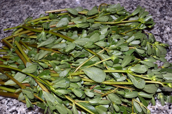 Lavamos bien la verdolaga bajo el grifo, dejamos que se escurra bien.