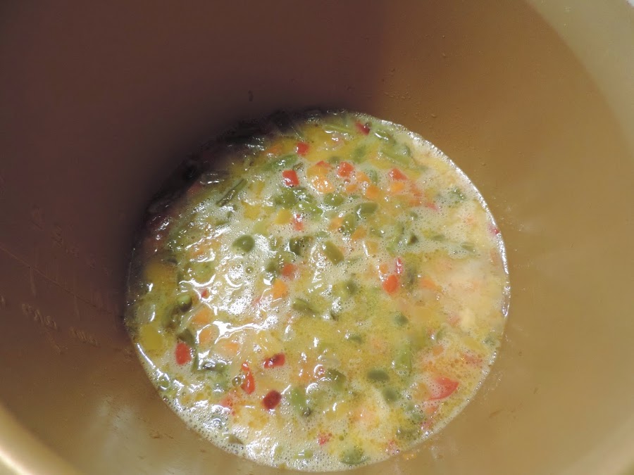 Añadimos los huevos batidos, mezclamos todo bien que nos quede repartido.