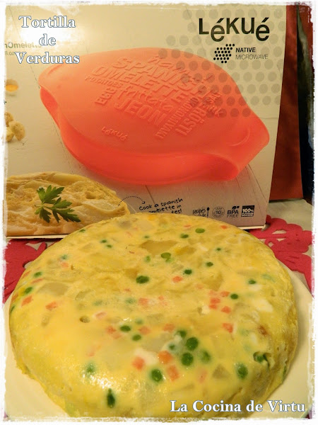 Había cocido unas verduritas para una ensaladilla, pero una cosa a la otra. al final, nada, así que unos huevos y al micro... y mirad que tortilla!!!