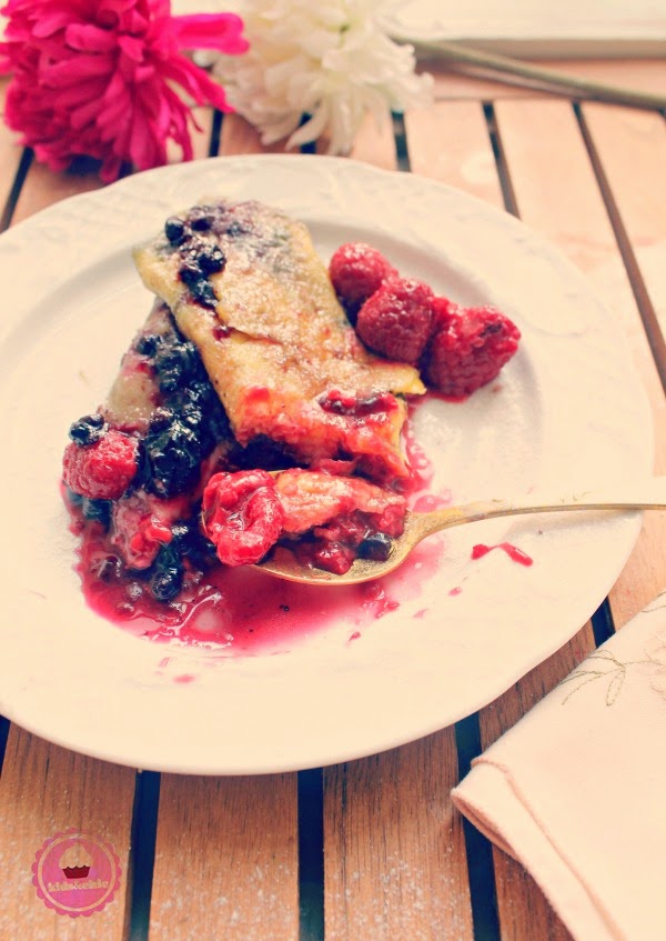 El sabor dulce y el puntito ácido de los frutos rojos hacen de este "falso crepe " una receta de lo más suculento .. La próxima la haremos con plátano , o con peras caramelizdas ... Muchas opciones que tiene la Tortilla con Dulce de La Tía Alia .