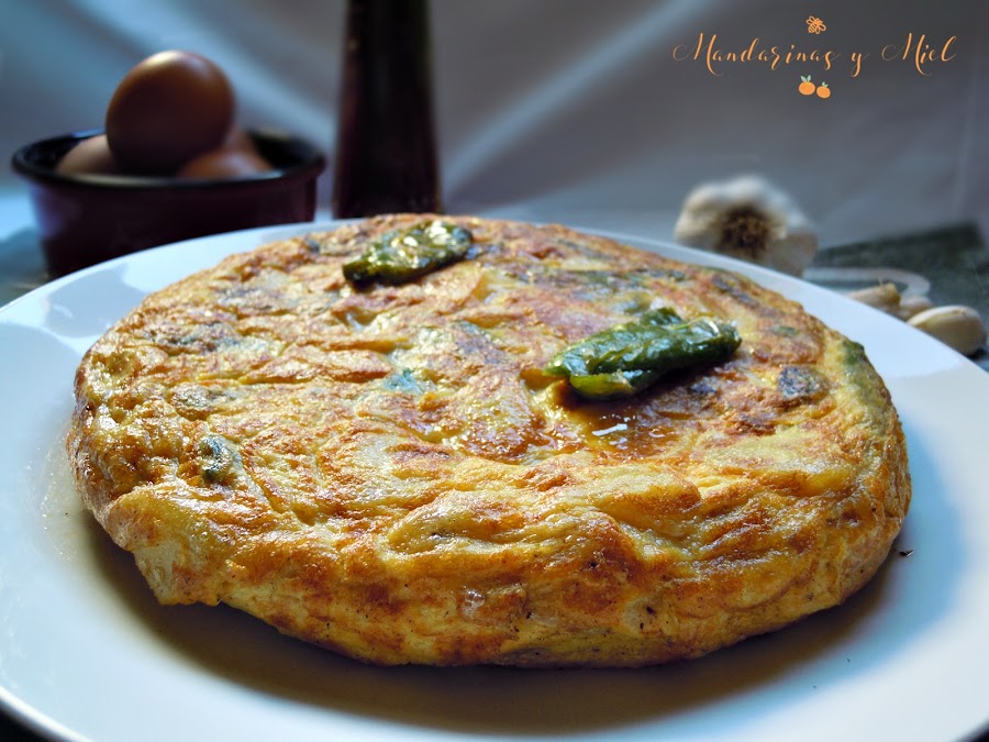 Ahora no he querido faltar a su aniversario y lo celebro con esta sabrosa tortilla española con pimientos del Padrón y chorizo de pueblo.....rica rica!!