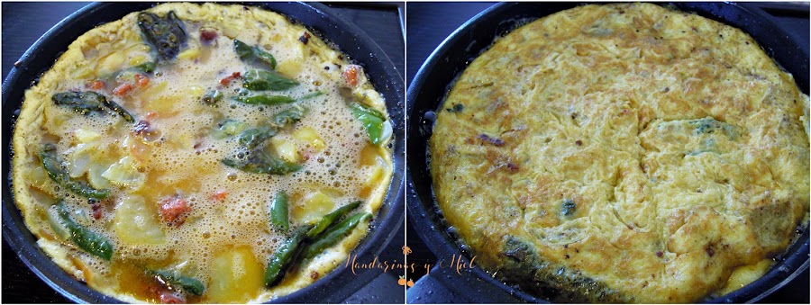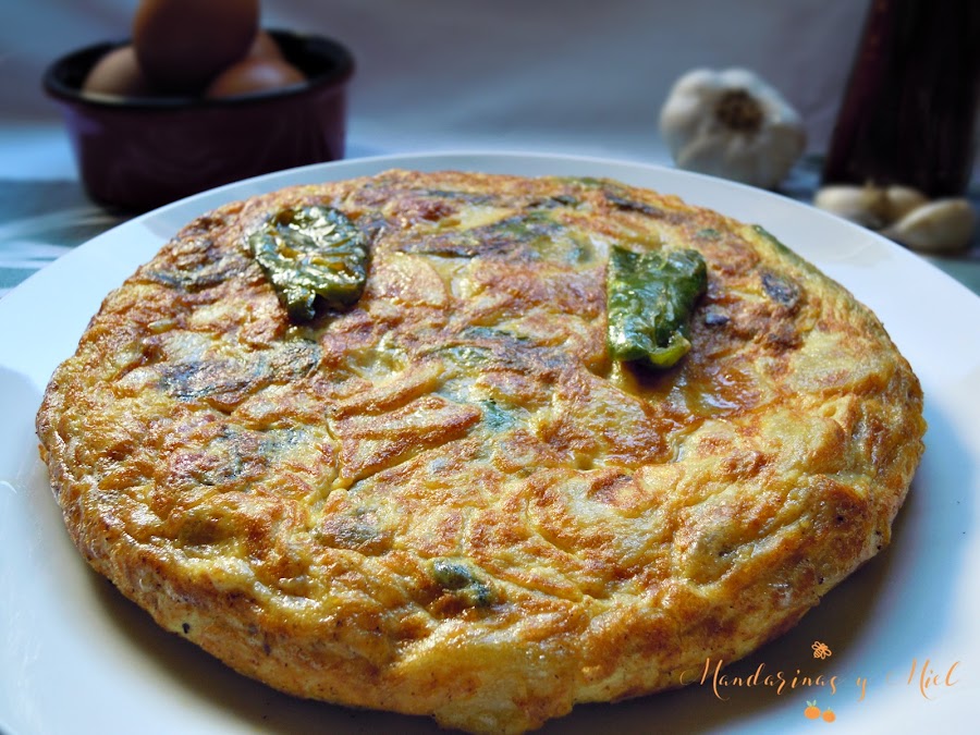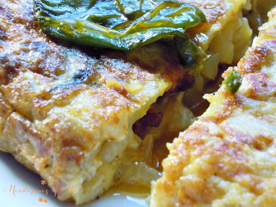 Ahora no he querido faltar a su aniversario y lo celebro con esta sabrosa tortilla española con pimientos del Padrón y chorizo de pueblo.....rica rica!!