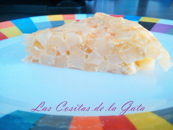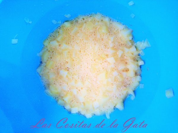 En un bol batir los huevos, añadir un chorrito de leche si se quiere, luego la cebolla y la patata. Remover bien. En la misma sartén donde hice la cebolla eché todo el contenido, bajé el fuego al mínimo. Hay que esperar un minuto y darle la vuelta. Luego otro minutito más y listo. La tortilla de la forma tradicional yo aprendí de mi suegra cómo se hace, porque es como me gusta, queda jugosita por dentro, pero si te gusta más hecha, pues simplemente hay que dejarla un poco más con cuidado de que no se queme.