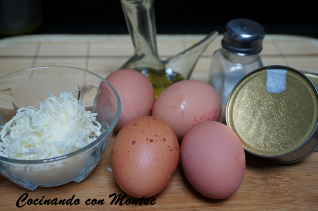 Ponemos los huevos en un bol y los batimos, con un poquito de sal. Pondremos poca sal ya que el atún y el queso ya lleva.