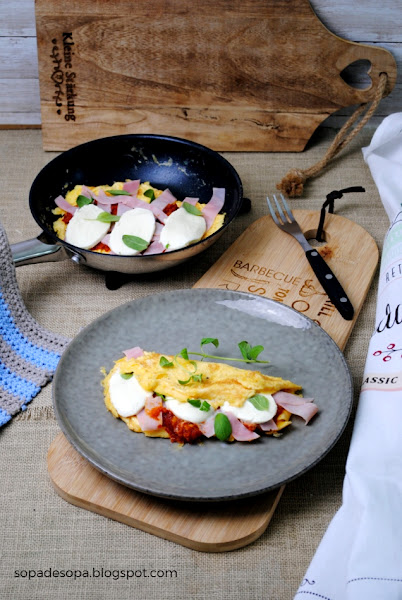 En este caso he sustituido la masa de pizza en una tortilla francesa. Convirtiéndola de nuevo en la cena perfecta para el verano.