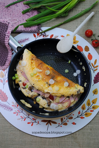 El nombre de esta tortilla, "espuma", es debido a que se hace con las claras de huevo semi montadas y esto hace que se cocine muy esponjosa. Luego, se cuaja tan solo por un lado. No hay necesidad de darle la vuelta ni tampoco de meterla en el horno como acostumbro hacer casi siempre. Seguro que mi dulce Concha sabrá ponerle otro nombre a la tortilla de hoy, porque realmente no sabía como llamarla.