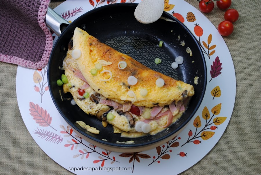 Pues, cómo no solo de "espuma" vamos a comer, también lleva champiñones, queso, jamón dulce, tomatitos y cebolleta para darle frescor. Os adelanto que esta tortilla está más que rica y es perfecta para #LaColecciónmásricadelmundo.
