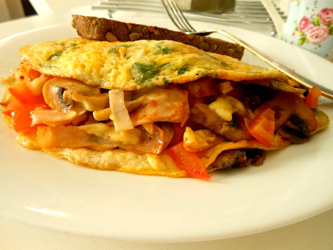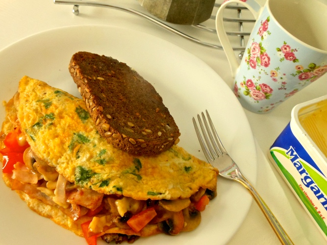 Cuando el queso esté fundido dobla la tortilla por la mitad y sírvela con una tostada untada de mantequilla.