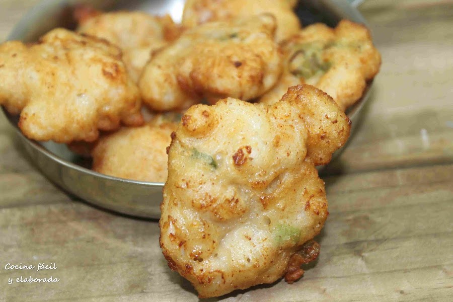 Dejamos reposar una hora tapado en el frigo (para que no tome olores). Calentamos el aceite a fuego fuerte y con una cuchara grande vamos cogiendo porciones de la masa y lo vertemos con cuidado en el aceite, hacemos tandas de 4-5 tortillitas y en 2 minutos por cada lado estarán bien fritas. Listas para comer.