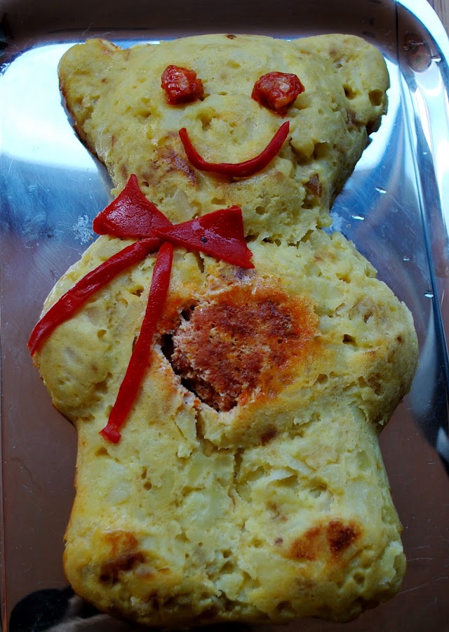 Tortilla osito, acepto pulpo como animal de compañía y os muestro la tortilla que Lourdes Santos nos trae desde su blog “La cocina de Pikerita”, supongo que si tenéis niños… podrá resultar divertida.