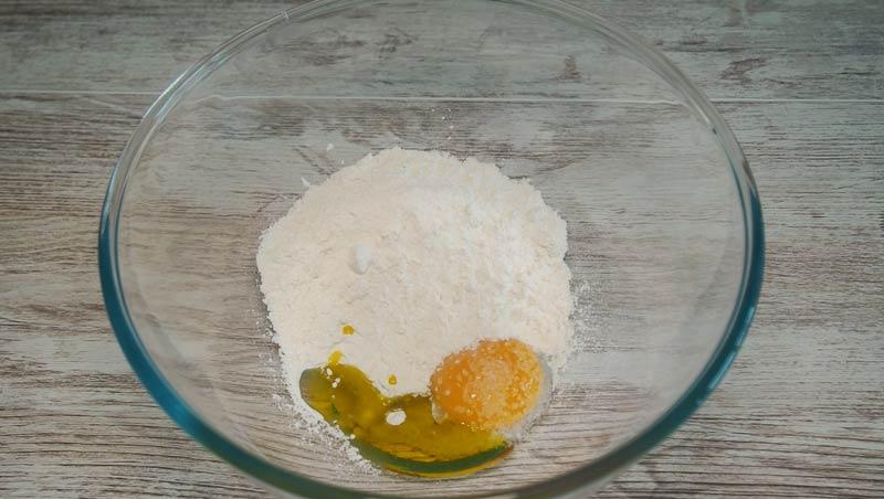 Después, al recipiente donde tenemos la yema, vamos a agregar 100 gramos de harina. De momento añadimos eso, si después vemos que nos hace falta un poco más porque veamos la masa muy líquida, le añadimos un poco más.