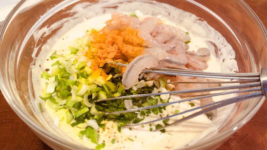 Mezclando bien todos los ingredientes tenemos preparada la masa para hacer nuestras tortillitas de gambas.