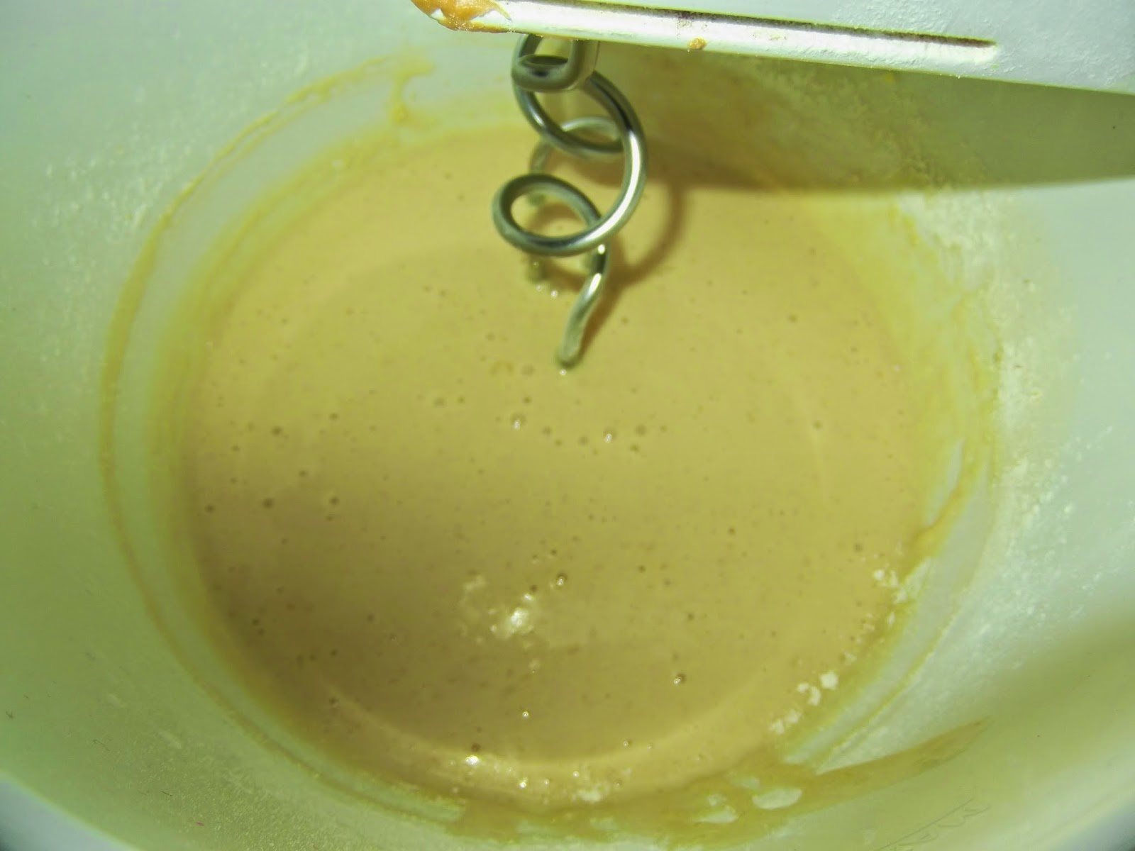 Ponemos a batir el huevo con la sal, el azúcar normal y el avainillado, echamos la mantequilla derretida y la leche. Cuando tenemos esto bien batido le añadimos tamizada la harina de repostería y la levadura y continuamos batiendo hasta que veamos una masa sin ningún grumo.