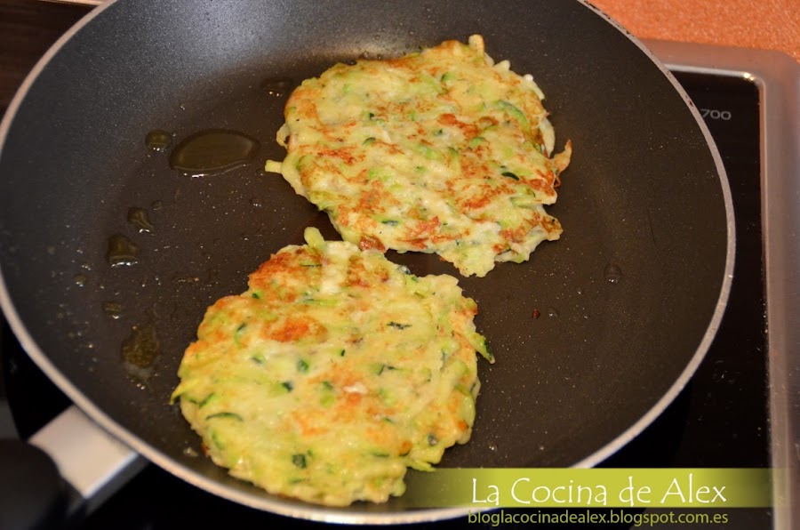 Para hacer las tortitas, en una sarten ponemos un poco de aceite de oliva, cogemos un poco de la mezcla con una cuchara, la ponemos en la sarten aplastandola un poco y la hacemos por los dos lados hasta que este bien dorada.