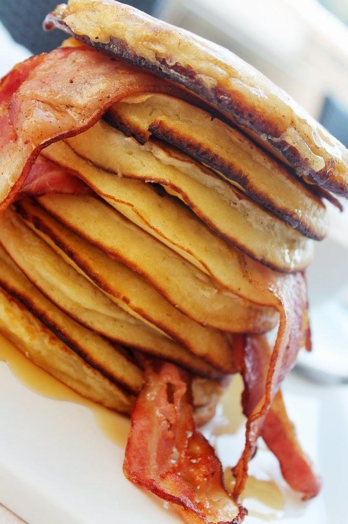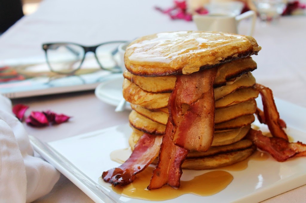 En la receta de hoy nos traemos un poco de América a nuestra mesa, Tortitas con bacon y sirope de Arce, de Canadá por supuesto.