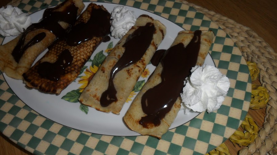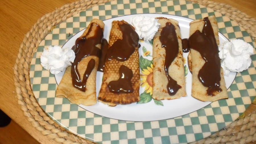 Ponemos al fuego medio, una pequeña sartén y la pincelamos con aceite de girasol o si preferimos con mantequilla. Agregamos un cucharon pequeño de masa y giramos con cuidado la sartén de forma circular un par de minutos.Veremos burbujear la masa, le damos la vuelta con una espátula y dejamos otro par de minutos con cuidado no se quemen.