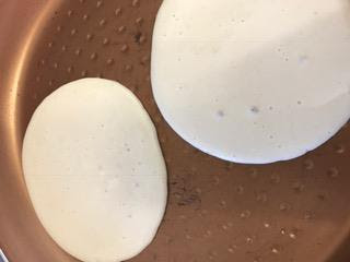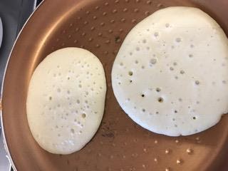 Importante para que salgan bien es no tocar hasta el momento de voltear. ¿Cuando? Cuando la superficie de la masa se llene de pompas.