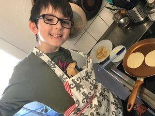 Receta con niño de la más alta categoría. Si quieres a tu niño feliz... ponle el mandil. Esto me lo acabo de inventar pero con mis hijos no falla.