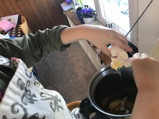 Y así es como esta tarde de miércoles, en la que no habíamos planeado nada, hemos aprendido matemáticas, química y lengua española. Hemos trabajado psicomotricidad, coordinación y asociación de ideas. Hemos jugado a las cocinitas y pasado tiempo de calidad madre hijo. Lo único que yo no he hecho muy bien ha sido el reparto final del trabajo: el nene se come el doreyaki y yo limpio la cocina.