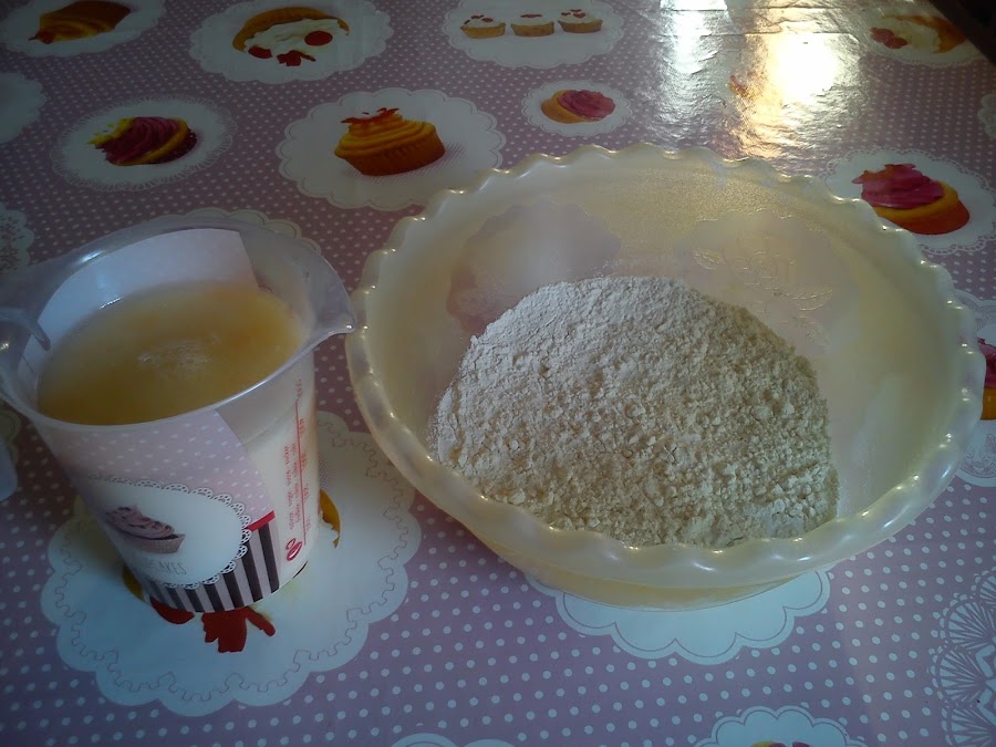 Mezclar por una parte la harina tamizada, la levadura y el bicarbonato.