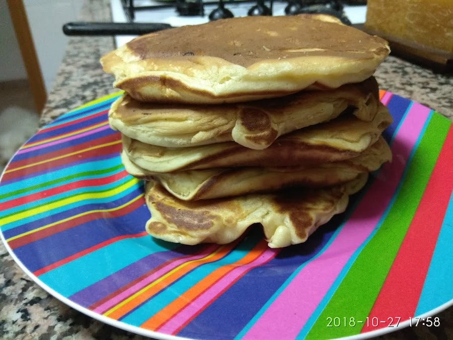 Una semana mas os traigo otra receta rica y rápida de hacer, en este caso unas tortitas al estilo americano gorditas y esponjosas. Entre toda la faena que tenia,que no era poca...,se me ha ocurrido hacerles para merendar unas tortitas al estilo americano.Han quedado muy buenas la verdad,porque han quedado gorditas y esponjosas.Yo creo que si tuviera una sartén mas pequeña de la que he utilizado para hacerlas,hubieran quedado mas gorditas.