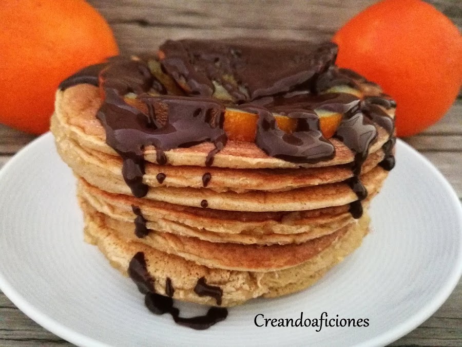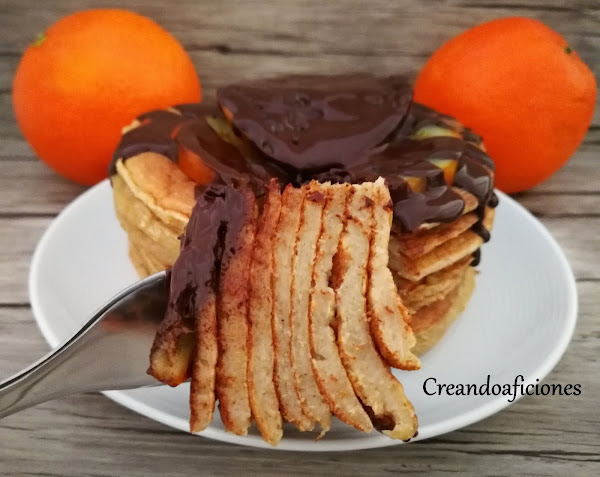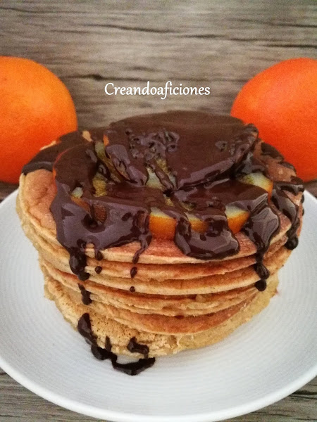 Unas ricas tortitas con naranjas confitadas. La receta de las naranjas confitadas la tenéis pulsando en este enlace naranjas confitadas. Encima de las tortitas, unas onzas de chocolate negro con un chorro de almíbar de naranja, que nos saldrá de hacer las naranjas confitadas y listo para comer. Empezamos.
