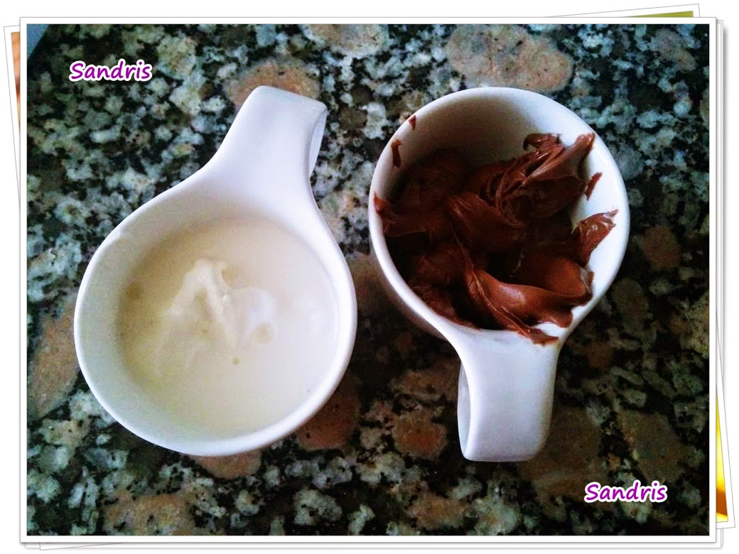 Para la salsa, solo tenemos que juntar los dos ingredientes en un cazo y a fuego bajo, removerlos hasta que se integren. Queda una salsa bien rica y líquida. Depende de lo que queráis, si la queréis más espesa, pues tendréis que agregarle más nutella o reducirla un poco.