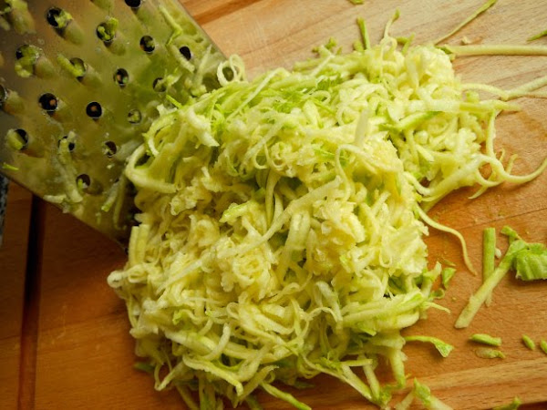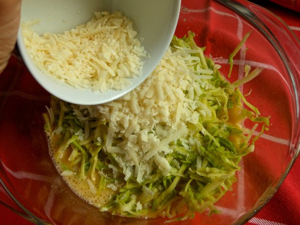 Mezcla los huevos batidos con el calabacín rallado y el queso parmesano.