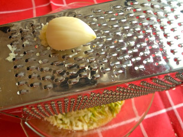 A continuación ralla el diente de ajo y agrégalo a la mezcla anterior, vuelve a mezclar todo bien para que el ajo rallado se integre en el conjunto.