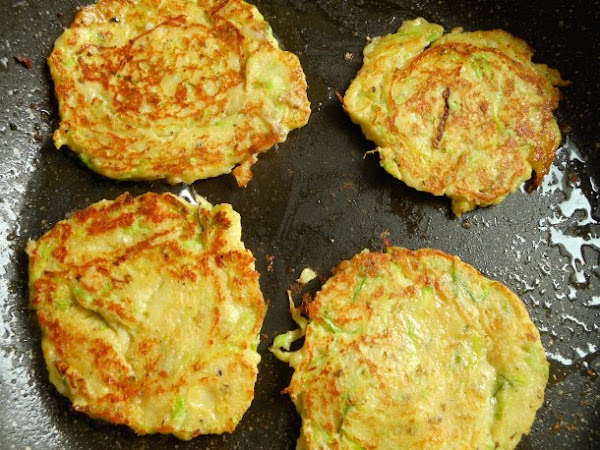 Coge cucharaditas de la mezcla de calabacín y échalas en la sartén, aplástalas con la ayuda de la espátula de cocina hasta darles forma de tortitas, no las hagas excesivamente delgadas. Cuando las tengas doradas por una cara dales la vuelta y dóralas por la otra cara.