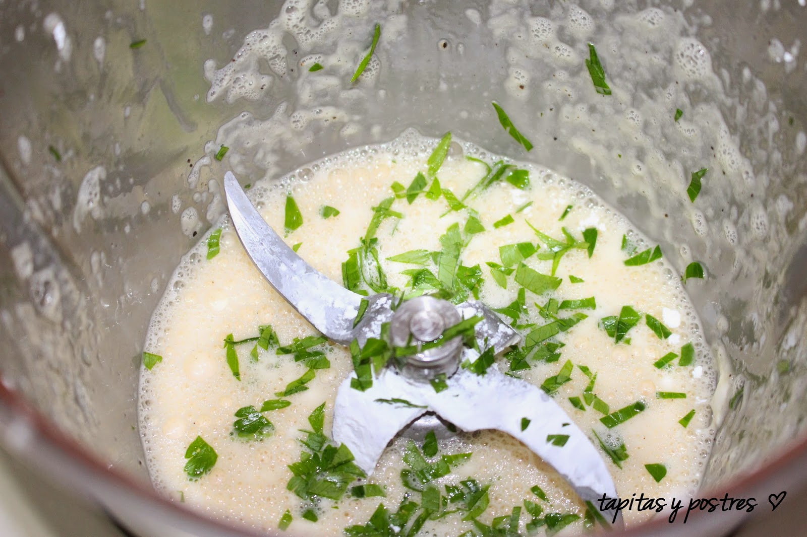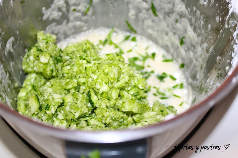 agregamos el perejil picado y el calabacín bien escurrido. Mezclamos 20 segundos a velocidad 3.
