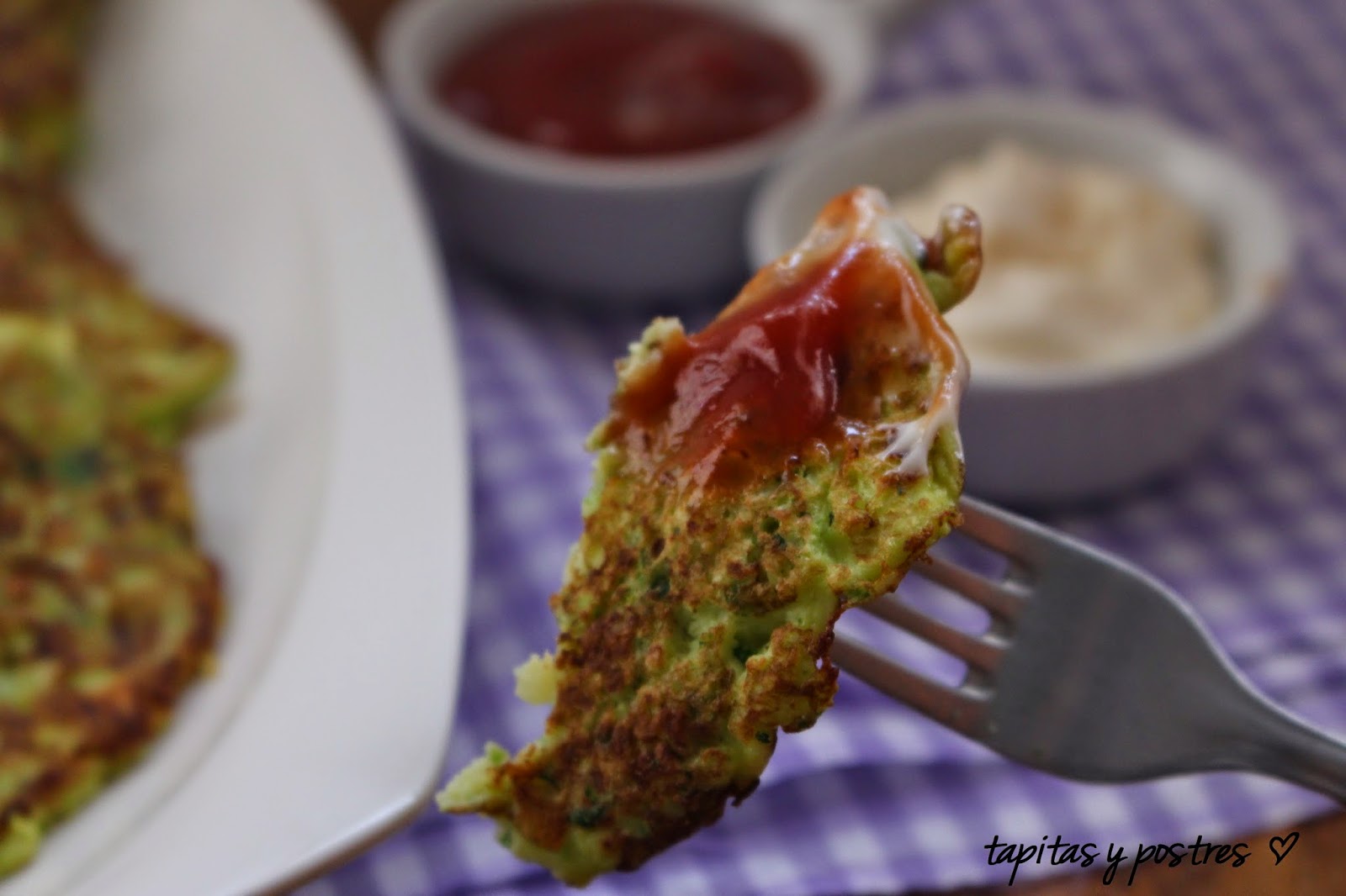 Acompañarlas de una salsa. la que más os guste. Yo les puse mayonesa y ketchup, pero una salsa de yogur le iría muy bien.