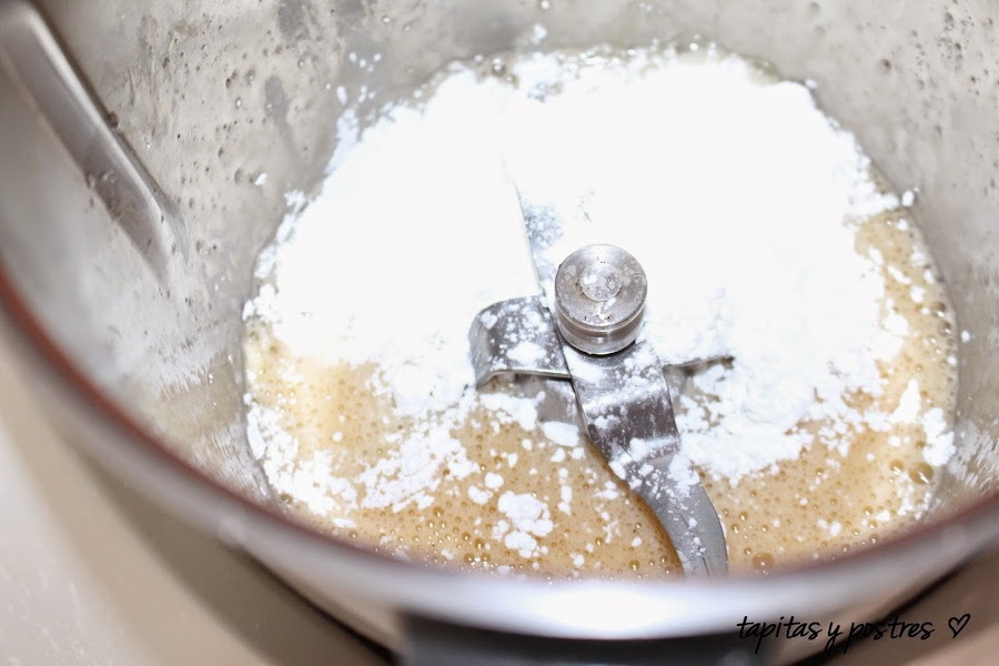 Añadimos la harina y mezclamos 20 segundos a velocidad 3 1/2.