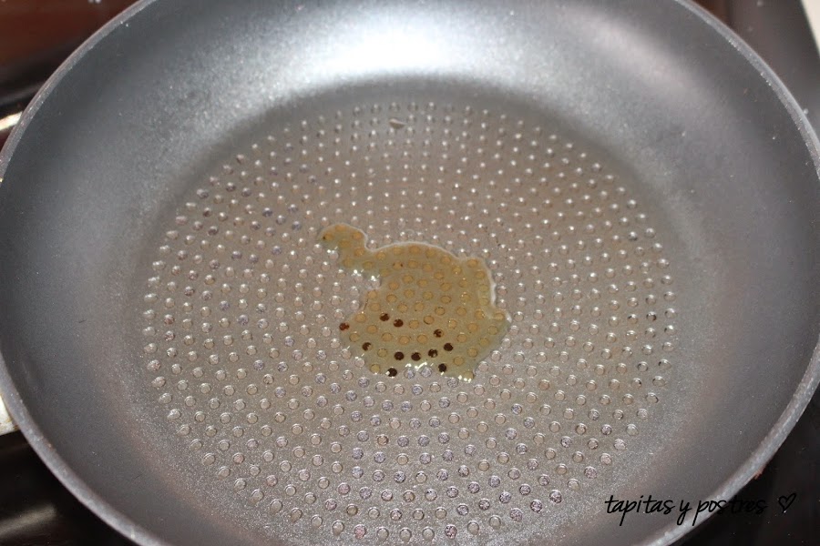 Ponemos una cucharadita de aceite en una sartén.