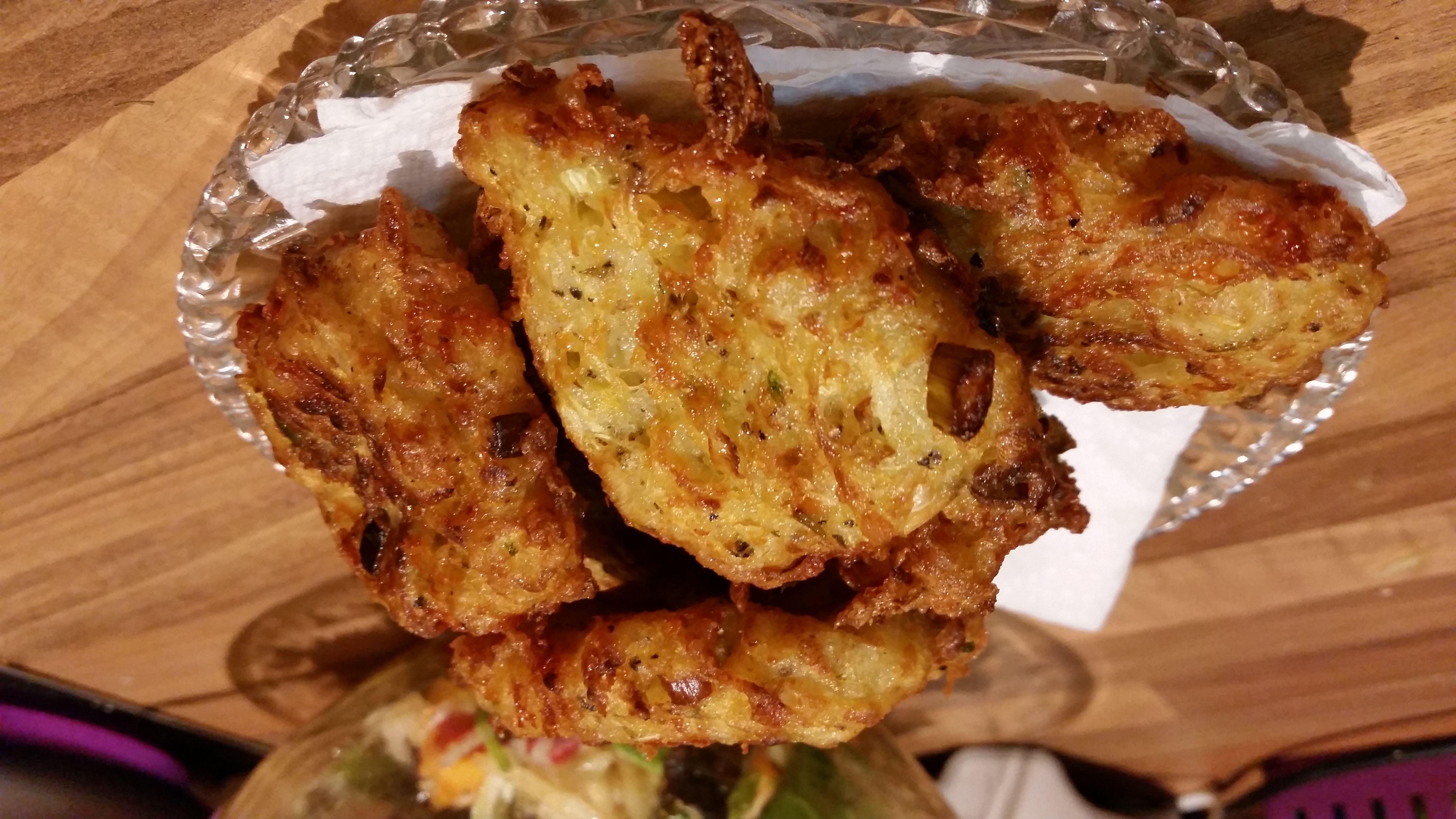 *En una sartén con aceite caliente freímos nuestras tortitas (yo cogí cucharadas y las iba poniendo a cucharadas y aplanando ligeramente al colocarlas sobre el aceite. Las freímos por los dos lados hasta que nos queden bien doraditas y luego las colocamos sobre un papel de cocina absorbente.