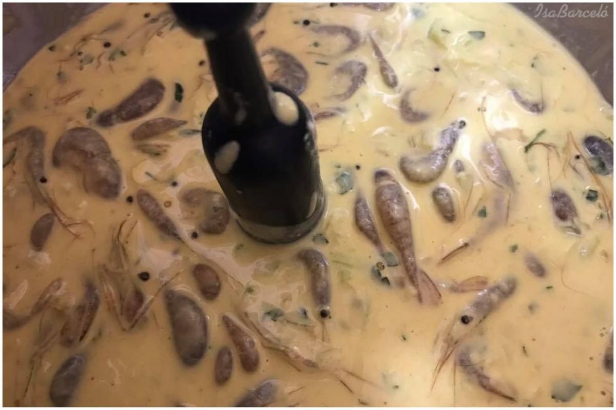 4. Añadimos los camarones y mezclamos con velocidad 2, 1 minuto.