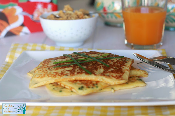 Os presento en Con Arte y Paciencia unas tortitas sencillas y sanas, tortitas de cebollino. Como sugerencia puede comerse con unos tomatitos cherry y huevos revueltos. En pocos minutos tendrás un desayuno o cena riquísima.