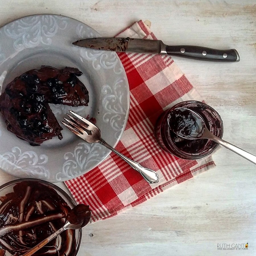 Como veis me levante chocolatera y le calenté en el microondas unas onzas de chocolate puro de mas del 80%, una vez derretido añadí una cucharadita de miel y una cucharadita de mermelada de arándanos casera, brutal.