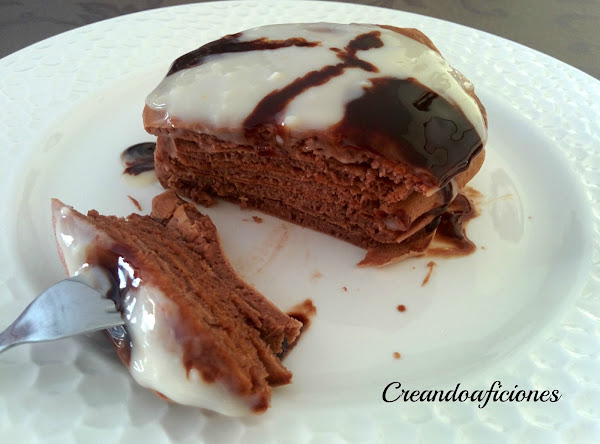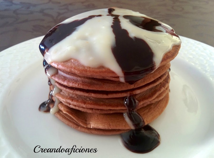 Vamos apilando todas las tortitas unas encima de otras y ponemos el sirope que más os guste, en este caso he puesto crema pastelera de naranja y sirope de chocolate y tengo que deciros que estaba buenísimo.Que disfrutéis!!!!!!!!!!!!!!!!!!!!!!!!!!!!!