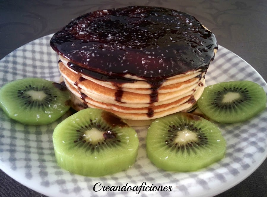 Las podéis servir con sirope de chocolate y espolvorear con un poco de coco rallado por encima y acompañar con la fruta que más os guste.