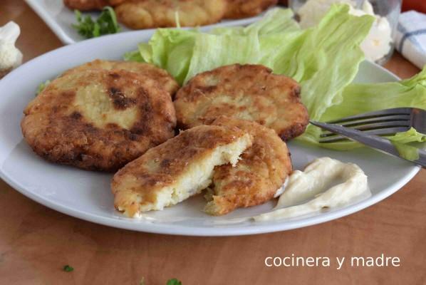 Servimos las tortitas de coliflor muy fáciles calentitas; y podéis acompañar con un poco de arroz, una ensalada y la mahonesa le va perfecta… pero eso ya os lo dejo a vuestro gusto.