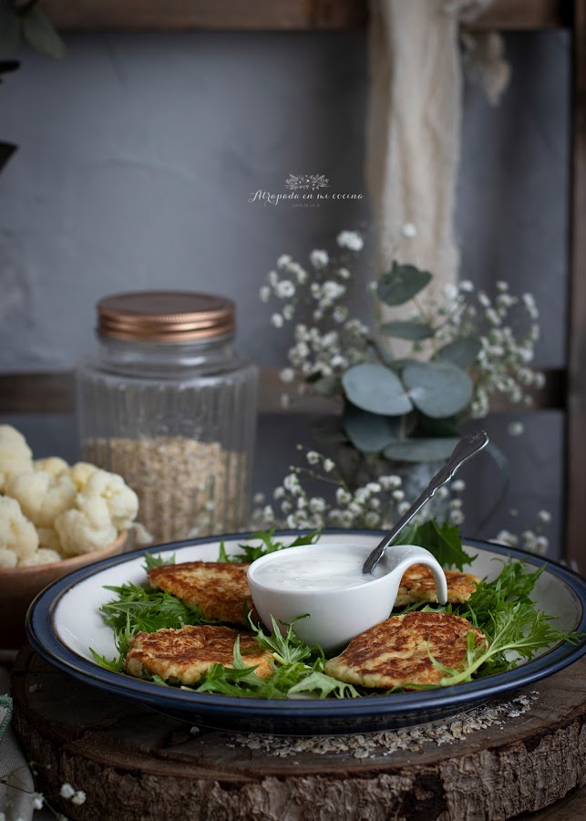 Es lunes y empezamos una semana de frío intenso con la visita inesperada de Filomena para comenzar este nuevo año, afrontamos la tercera ola de la pandemia tras las fiestas y, mientras seguimos esperando buenas noticias que nos impidan cancelar nuestra suscripción a 2021, acompañamos estos días de recetas sanas y sencillas. Y es que estas tortitas de coliflor y avena con salsa de yogur han triunfado en casa. Tengo la nevera llena de verduras y pienso ir preparando un montón de recetas ricas que sirvan de alternativa a otras dietas aburridas. La propuesta es ideal para una cena rápida o un almuerzo que acompañaremos de una ensalada. Espero que os guste.