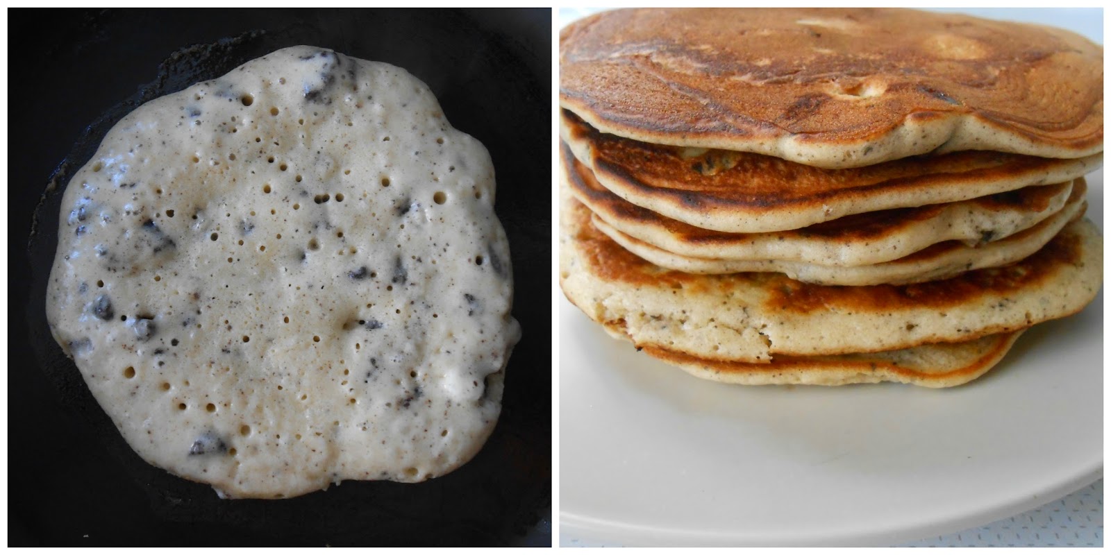 Poner un poco de mantequilla en una sartén y cocinar las tortitas, colocando con una cuchara o cucharón, un poco de mezcla. Cocinar a fuego medio y cuando se doren los bordes y se hagan agujeritos en la masa, darle la vuelta y cocinar 1 minuto más.