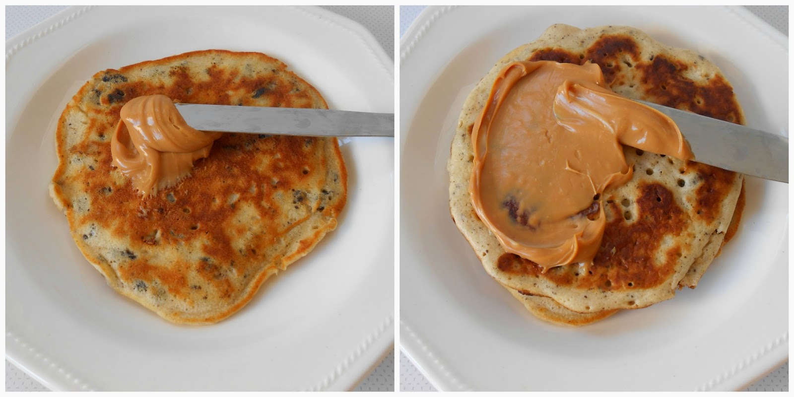 Colocar una tortita sobre un plato, untar con crema a gusto, colocar encima otra tortita y más crema, hasta terminar la torre. Decorar con galletas troceadas y crema.