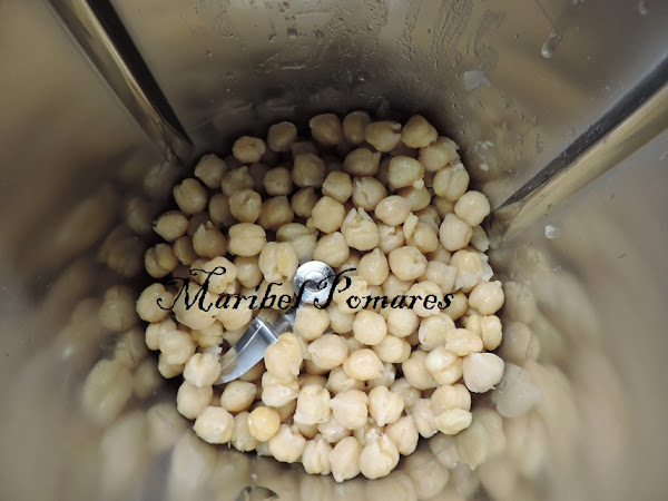 Ponemos los garbanzos ya cocidos y bien escurridos en el vaso del thermomix.
